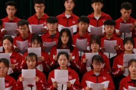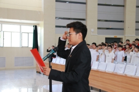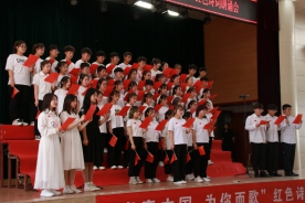 “我志愿加入中国共产主义青年团,坚决拥护中国共产党的领导......”全体共青团员面向团旗郑重进行入团宣誓。比赛正式开始,选手们以铿锵有力的气势、高昂的斗志诵读了红色经典,表达了对党的热爱与敬畏。中场环节,王英,王珂同学倾情献唱歌曲《奔跑》,杨劲升同学进行了个人朗诵表演《我骄傲,我是中国人》。比赛后,在场人员更是将其对党的热爱融进了“没有共产党就没有新中国”的嘹亮歌声中。