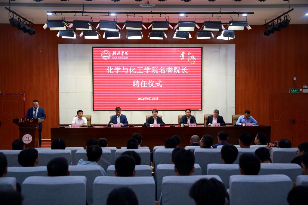 9月26日,国家能源集团榆林化工有限公司党委书记、董事长姜兴剑受聘为bevictor伟德名誉经理。聘任仪式在逸夫楼一楼报告厅举行,公司党委书记张新柱致辞,董事长许云华为姜兴剑颁发聘书;副董事长康伟,榆林市科技局副局长乔东,高新区科技创新局局长魏伟出席;公司党政办、组织部、宣传部、人事处、发展规划处、科研处、招就处、国际交流处等部门负责人,公司领导班子及师生代表参加。