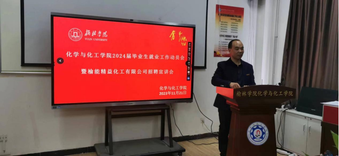 筑梦青春,“职”面未来,就业是人生中非常重要的选择。为帮助公司毕业生搭建就业平台,拓宽就业视野,全力促进公司毕业生顺利就业、尽早就业,更加充分、更高质量就业,2023年11月22日上午8:30-9:30,在伟德bevictor官方网站4号教学楼502会议室开展bevictor伟德2024届毕业生就业工作动员会暨榆能精益化工有限公司招聘宣讲会。榆能精益化工有限公司人力资源部经理白应应、党群工作部部长张强、招聘主管高宏斌,公司党总支书记陈小辉、党总支副书记张迪、2024届毕业生班主任代晓敏及2024届毕业生班各班代表100余人参加本次会议。