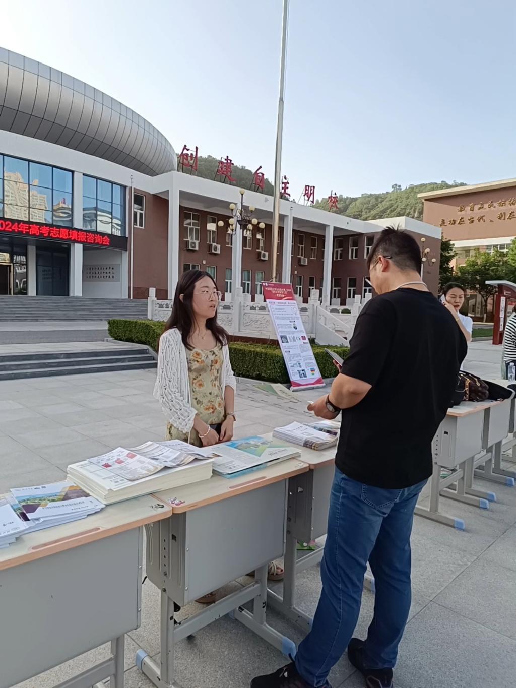 6月24日,在宜川中学的宣传活动中,公司招生宣传老师苏慧君、丁新燕通过展示宣传资料、现场答疑等多种方式,详细解读了今年公司的招生政策和招生计划,并与考生和家长进行了深入交流,为他们提供了细致的报考指导。