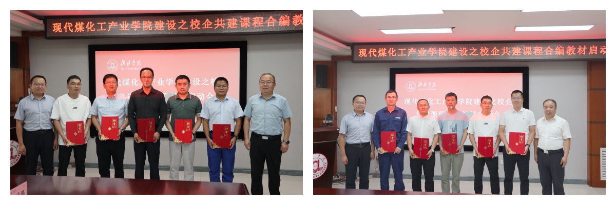 会上,公司聘请刘宁、杜海亭、慕毅、韩连鹏、王勇、李刚和王占鹏为《煤化工工艺学》、《化工仪表及自动化》、《氯碱化工工艺学》、《化工安全与环保》和《化工机械安装与修理》等五门课程的企业专家进课堂项目授课专家,从本学期起,为每门课程授课8-10学时;聘请李强、谢武强、李小刚、王伟、康尔波、任越飞、白胜凯和孙庆华为《现代煤化工技术及装备》、《工程流体力学及应用》、《计算机在化学化工中的应用》、《输油管道设计与管理》和《化工基础实验》等五本教材的校企合作编著教材项目外聘专家。旨在通过企业专家进课堂和校企合作编著教材,加强理论知识与应用技能的结合,加快推进现代煤化工产业公司建设,实现校企合作共赢。